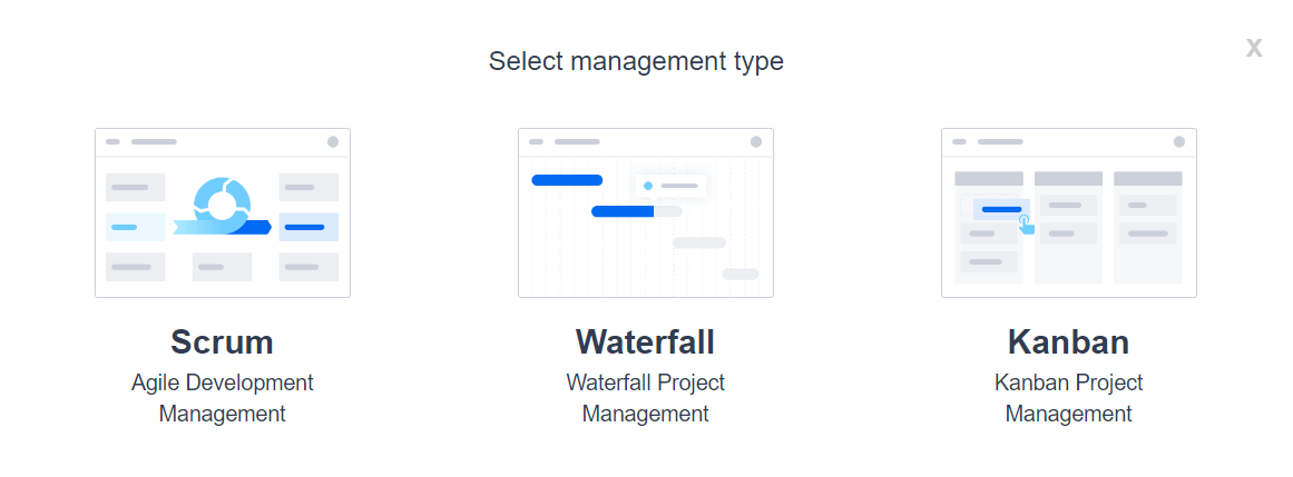 - Select Management Type: Scrum, Waterfall, or Kanban.