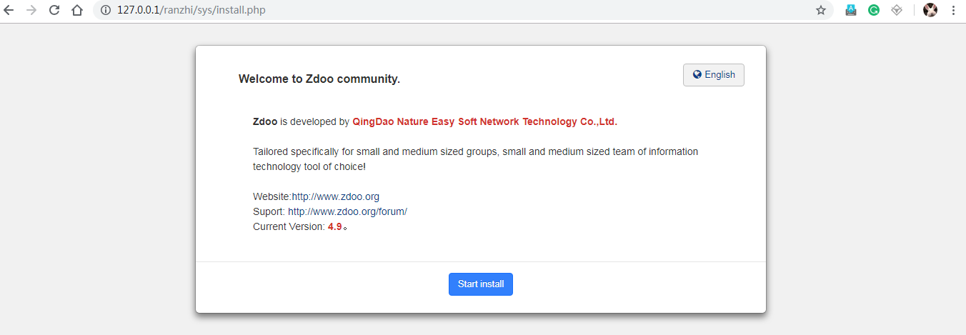 Visit http://127.0.0.1/ranzhi in your browser, and the installation will start automatically. Follow the instructions and it will do. It is the same as installing Zdoo via source code package. Refer to HERE for instructions.