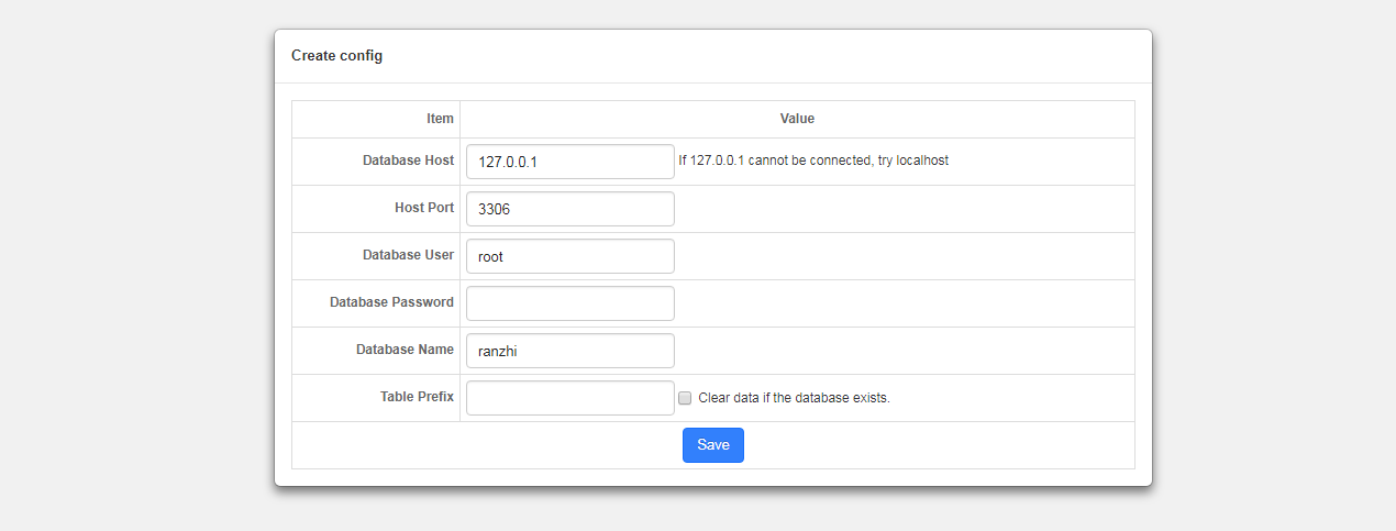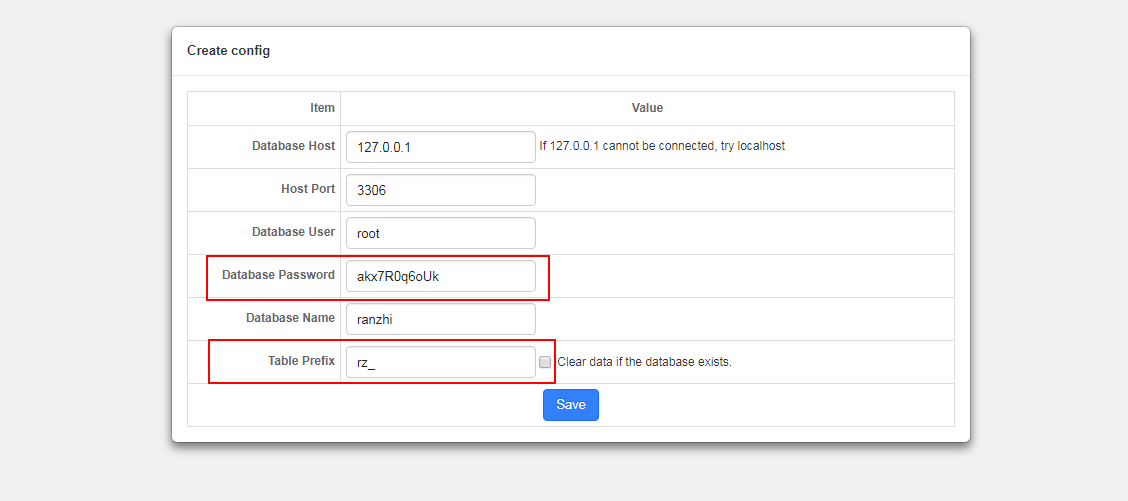 Configure it. Use the database password set in ZenTao Runner (Runner->Password)and set a table prefix for Zdoo.