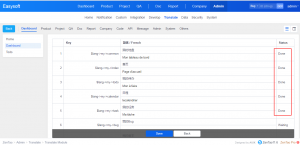 Modules of ZenTao are listed. Click the Translate button and you will enter the page to translate. The items are listed in separate lines.
