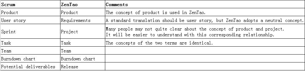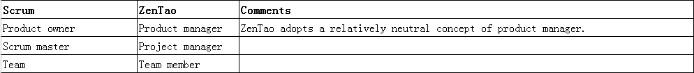 | Scrum | ZenTao | Comment |