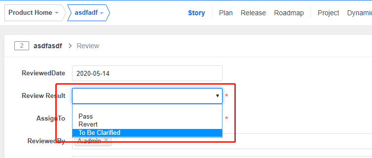 - You can Pass, To Be Clarified, or Revert the story change. If Pass, the status of the story will be changed from Changed to Active.