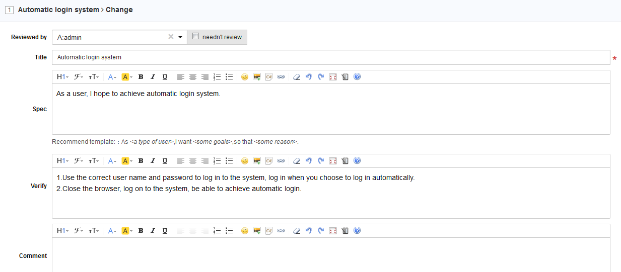 ZenTao provides a professional workflow of story change. Any changes to the Title, Description, Acceptance Criteria and Files of a story must go by the workflow.