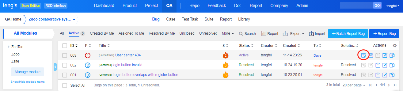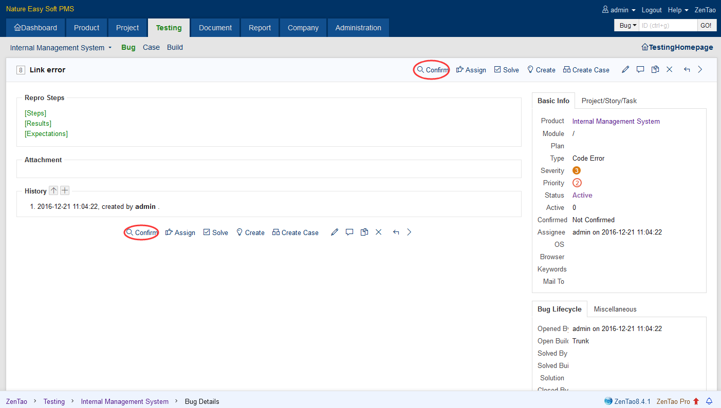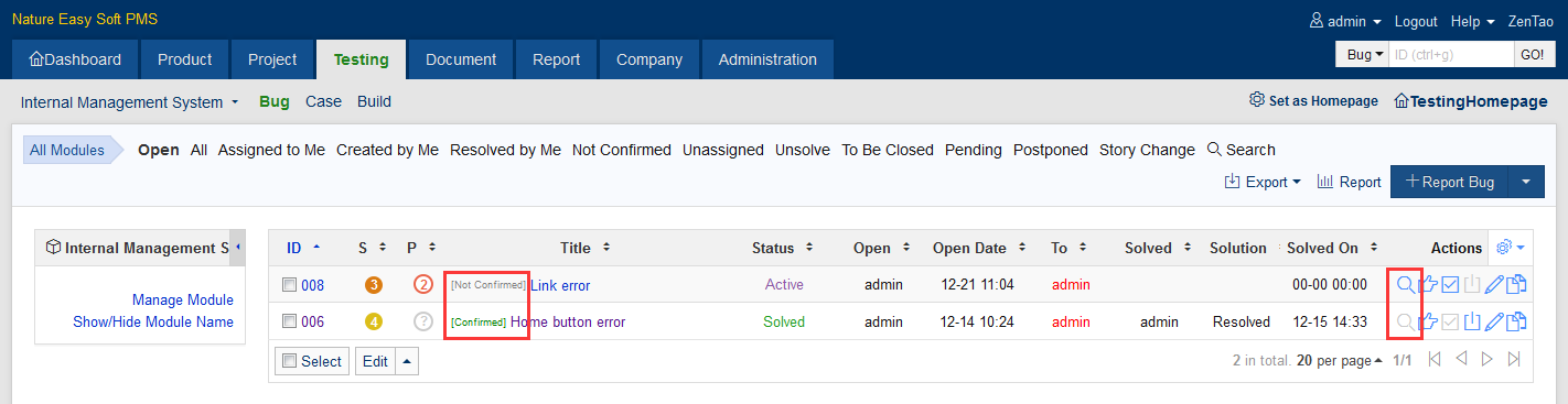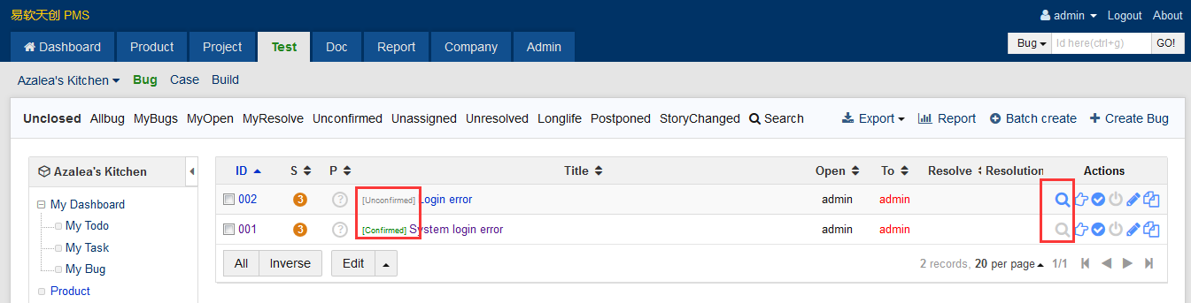 On the bug list page, you can see whether the bug is confirmed. Click the bug you want to confirm and you will see a Confirm button on the bug detail page or on the right of the bug lists. One thing to be noted is that a bug will be automatically confirmed if it has been resolved.
