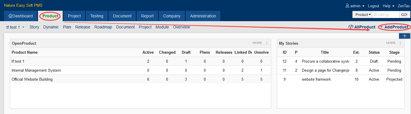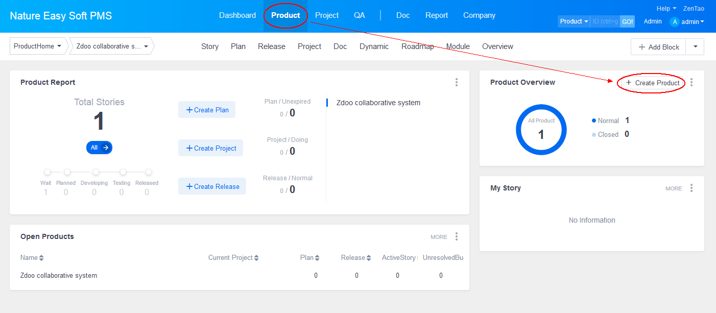 ZenTao design philosophy is all about products, so the first thing you need to do is to create a product.