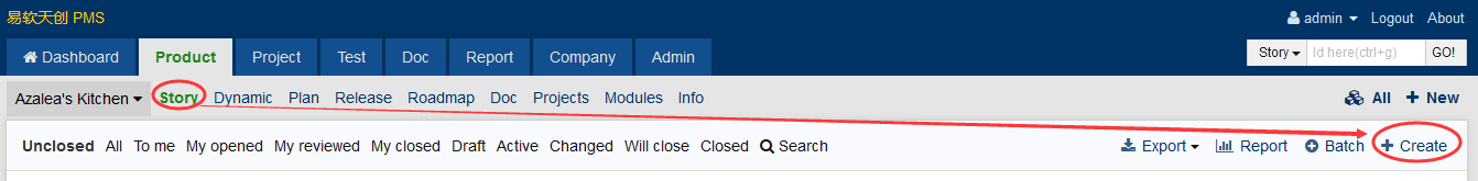 2. Go the Product->Story->Add Story.