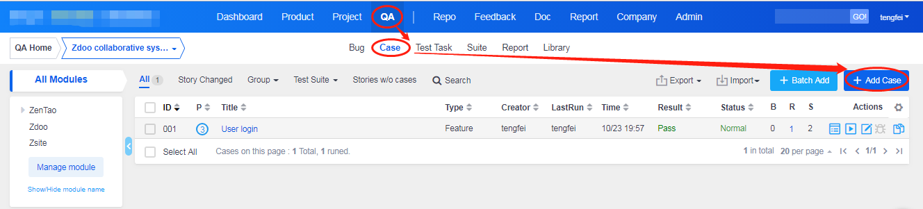Go to QA->Case and click Add Case.