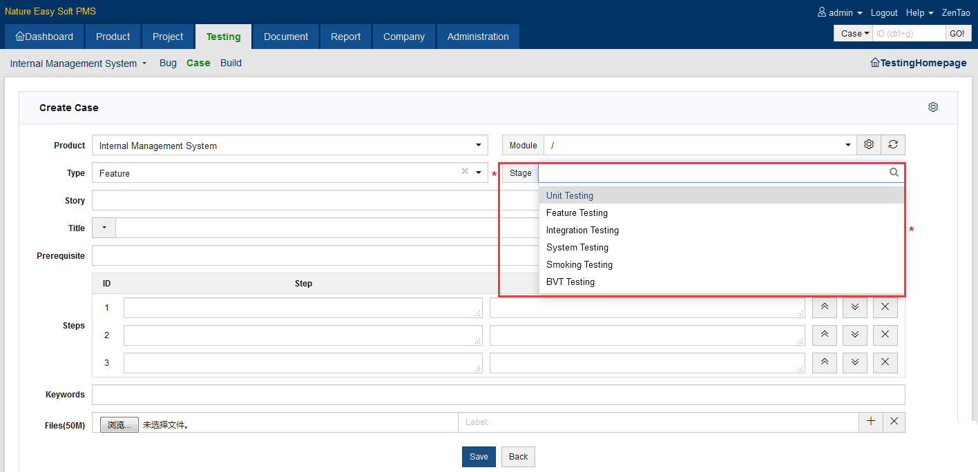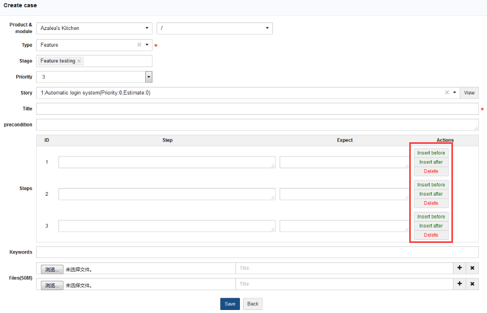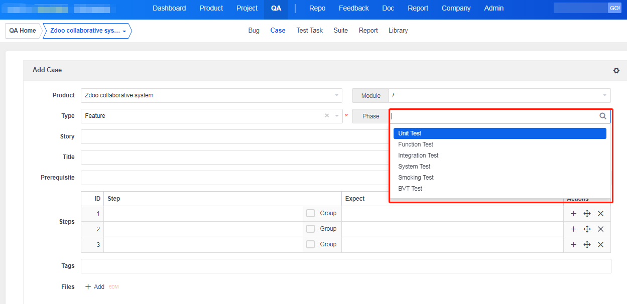The steps of test cases are completely separated in ZenTao. Each test case has several steps. You can set estimations for each step so to facilitate managing test results and creating bugs.