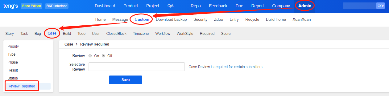 Users who have the privilege to review can review cases. You can assign review privileges according to your actual work. Go to Company->Privilege->Test->Case to set review privileges.