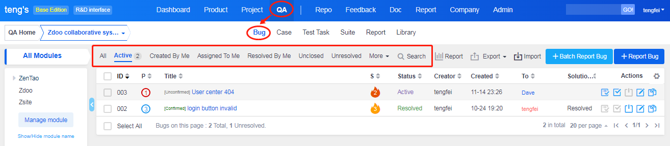 One of the important work for the QA team is to find bugs. In ZenTao, there are a lot of ways to do it.