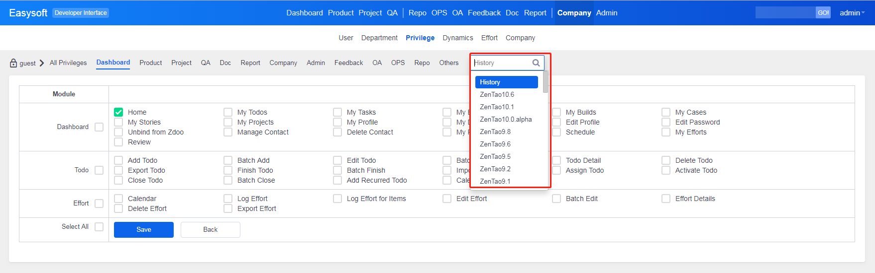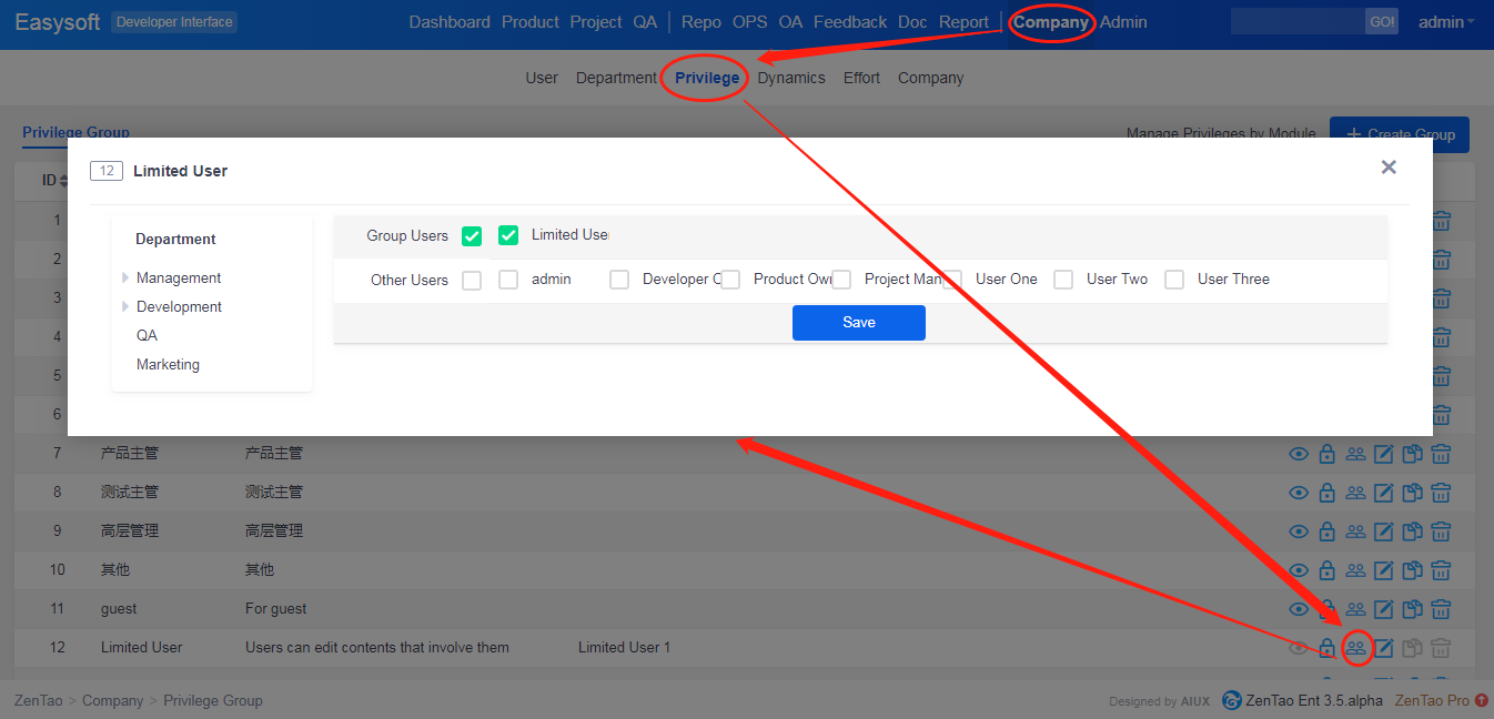 2.8 Limited User is added to Company->Privilege in ZenTao 9.6.2+. It is suitable for new hires who might make mistakes and cause problems to the team because they are not familiar with how it works in ZenTao.