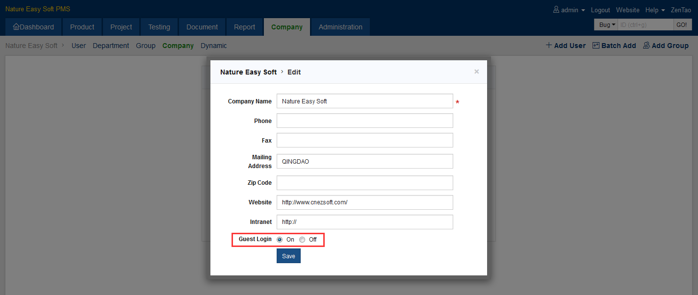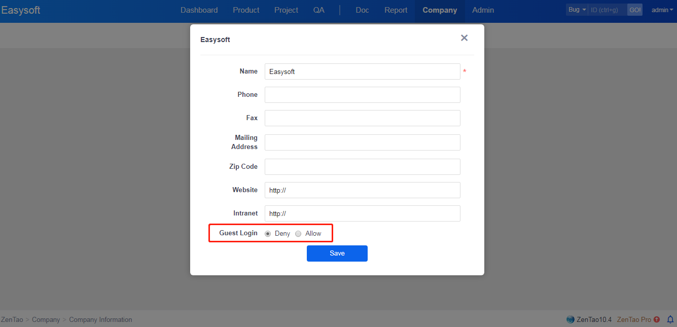 Guest login can be set in ZenTao. Other users from the company or clients can have access to ZenTao without login to track projects. Now, let’s how to set guest login.
