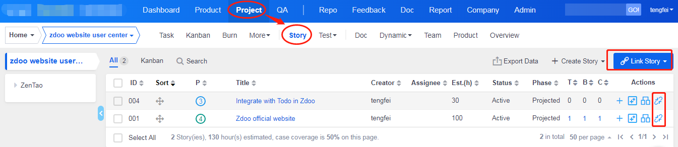 Sprint planning meeting is to link stories to projects in ZenTao.