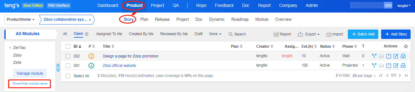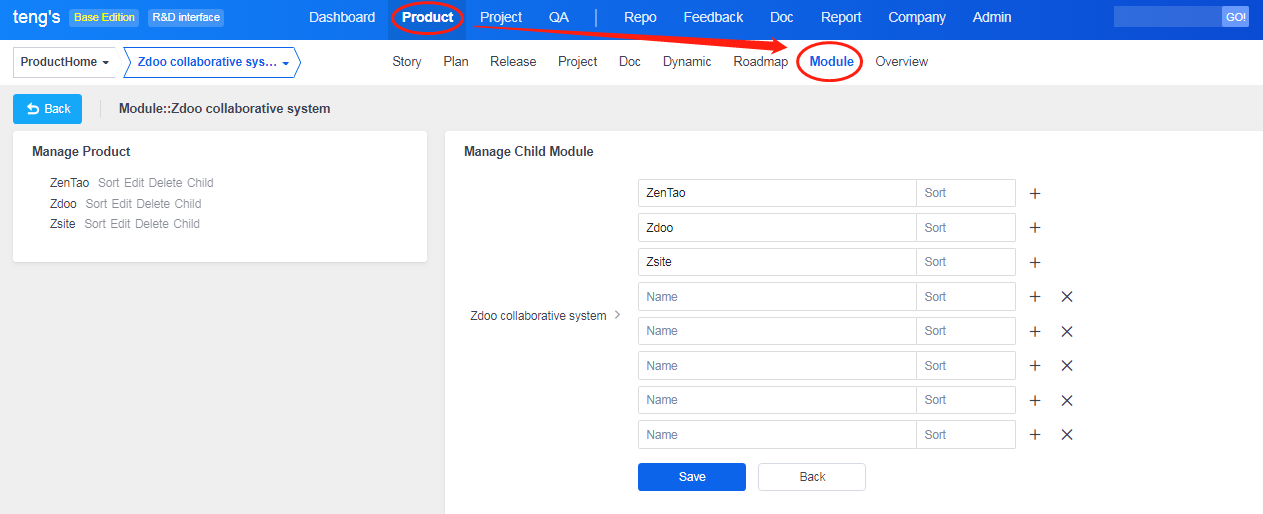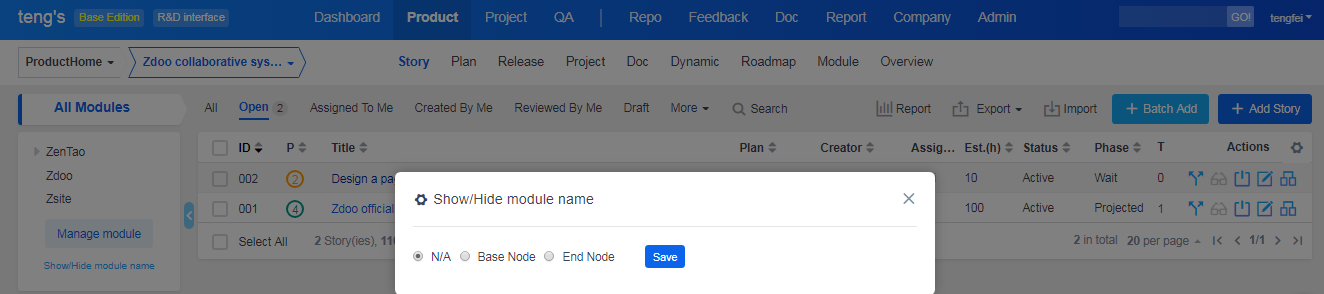 After adding products, next is to set modules for products. Modules are like categories of stories. You can understand products at a macro level and easily sort/manage stories through modules.
