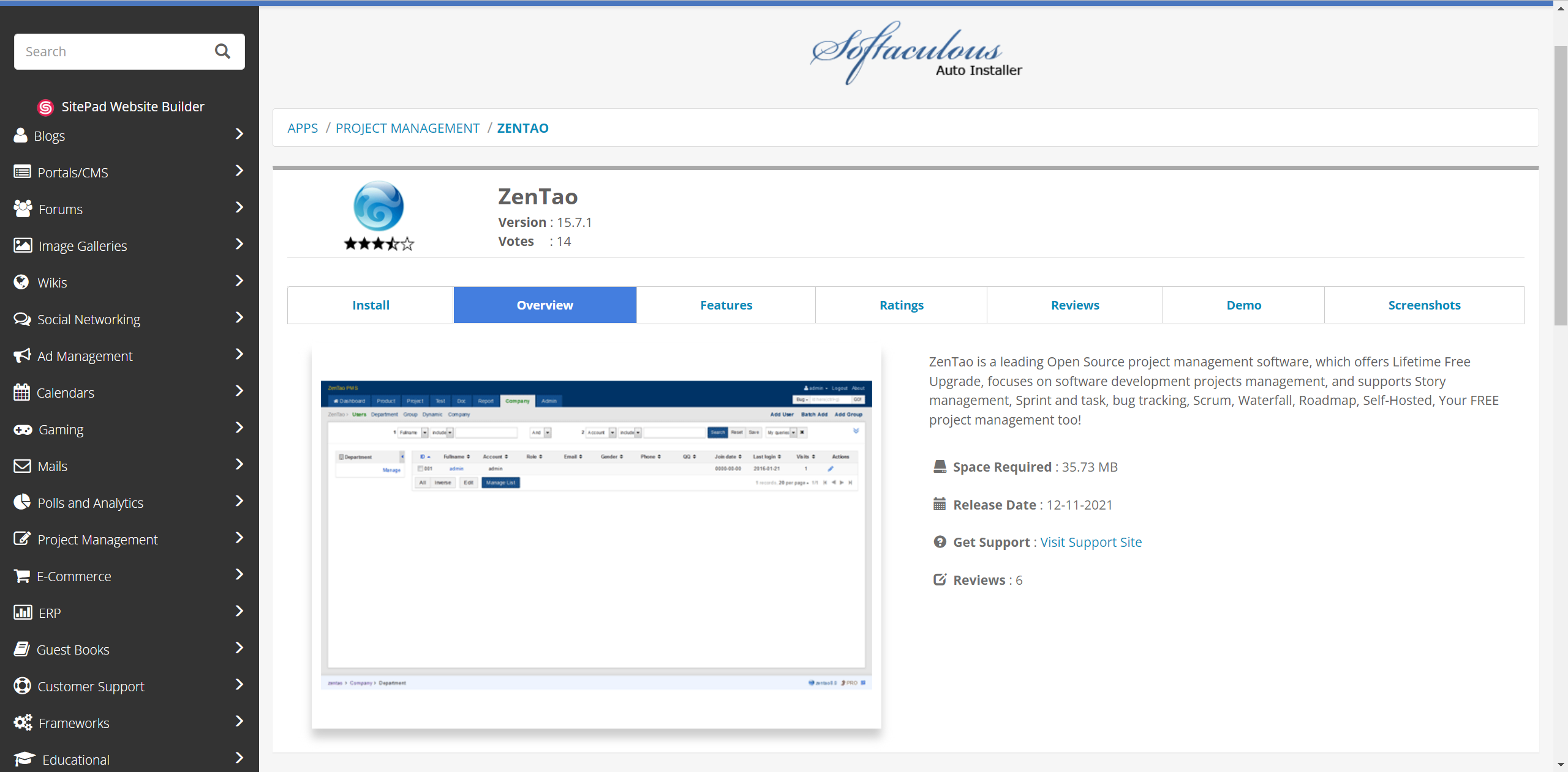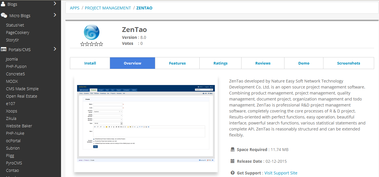 Also you can try the demo on Softaculous: http://www.softaculous.com/softaculous/demos/ZenTao