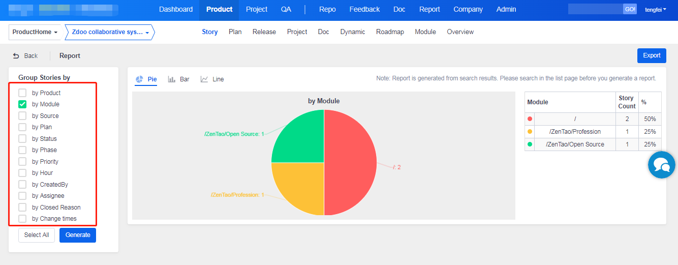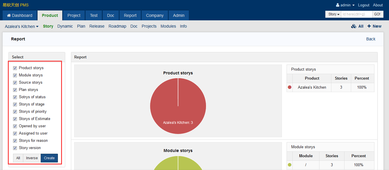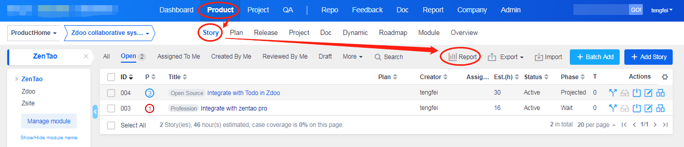 ZenTao added the basic reports on product stories in ZenTao 2.0+, according to stories gathered from our users.