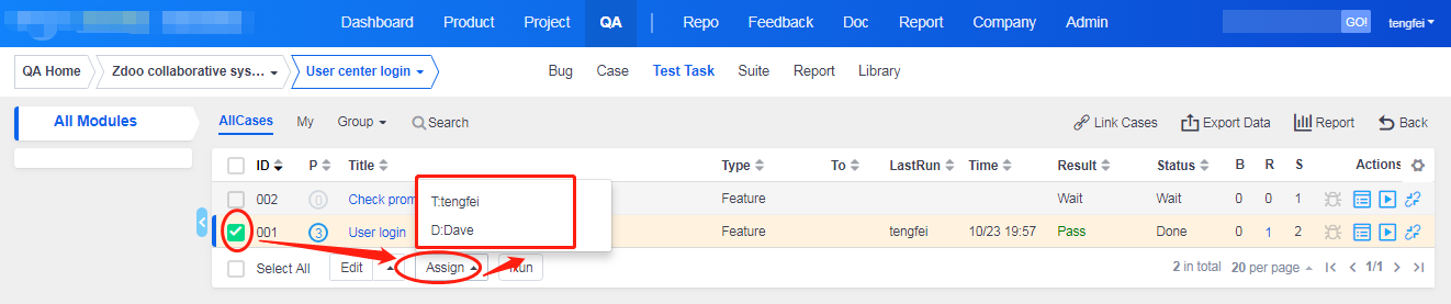After developers applied for QA, test requests will be generated and assigned to testers. What testers have to do is to create linked test cases for these requests. If this request requires multiple testers, its linked test cases have to be assigned to testers to do, or testers can claim test cases.