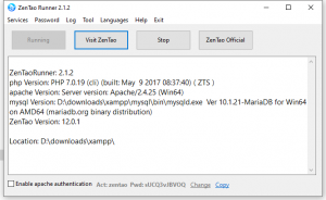 In order to simplify installation, a one-click installation for Windows has been integrated with XAMPP, a very well-known AMP integrated environment. ZenTao’s one-click installation package is mainly simplified based on the XAMPP, and integrates our self-developed integrated panel, which will be more convenient to use. Regarding the one-click installation package of XAMPP, you can visit the following official website if you have any interest: https://www.apachefriends.org/ (Note: This is the official website of XAMPP, not the one-click installation package of ZenTao).