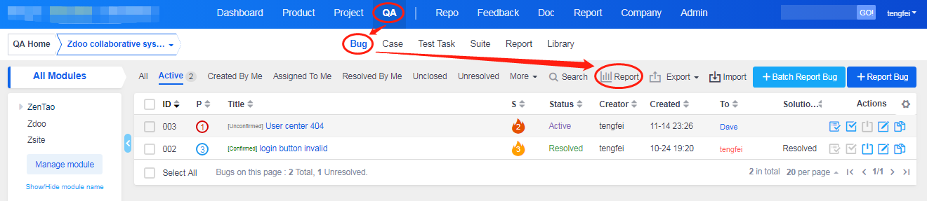 Another important thing in QA management is the report. Let’s look at the steps to generate reports.
