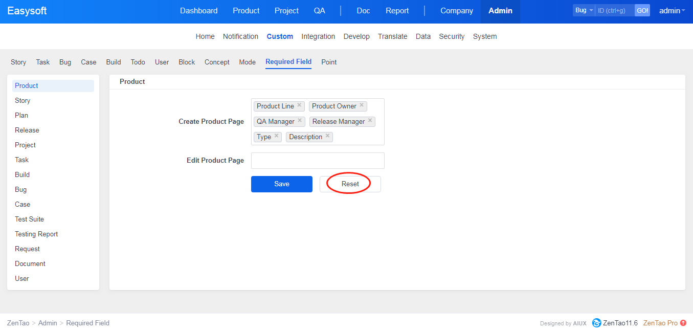 With ZenTao 9.6+, users can customize required field.
