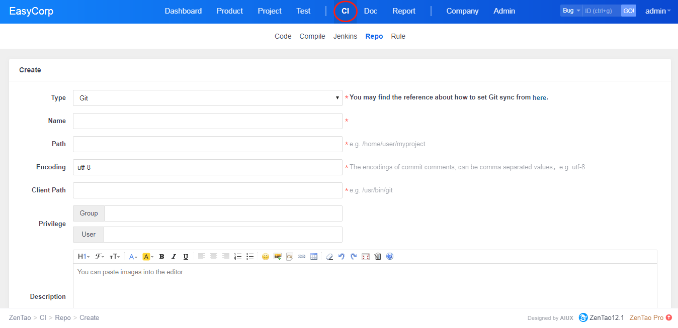 - Path: the path of a repository, such as http://zentaoms.googlecode.com/svn. This path does not have to be a root.