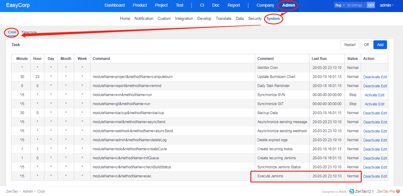 ZenTao open source 12.1.stable and up has the CI(Continuous Integration) module added, which includes features such as Jenkins.