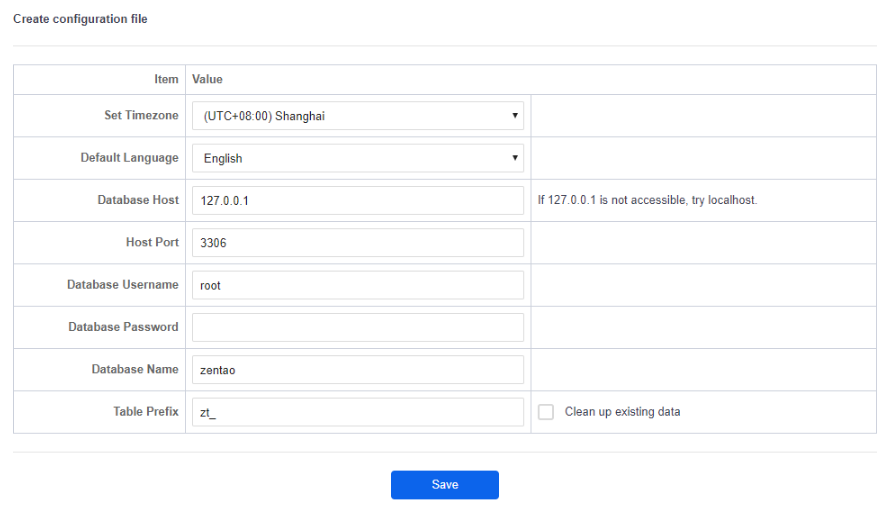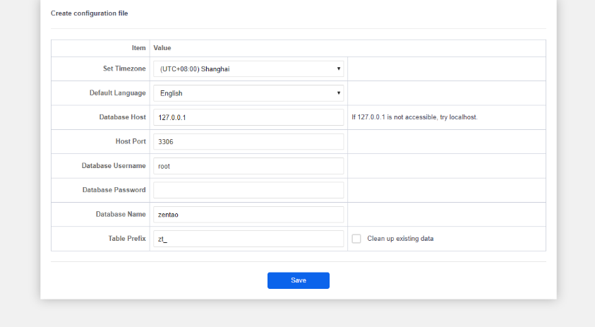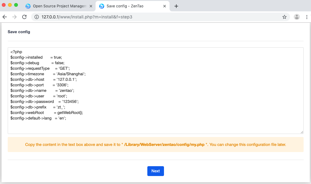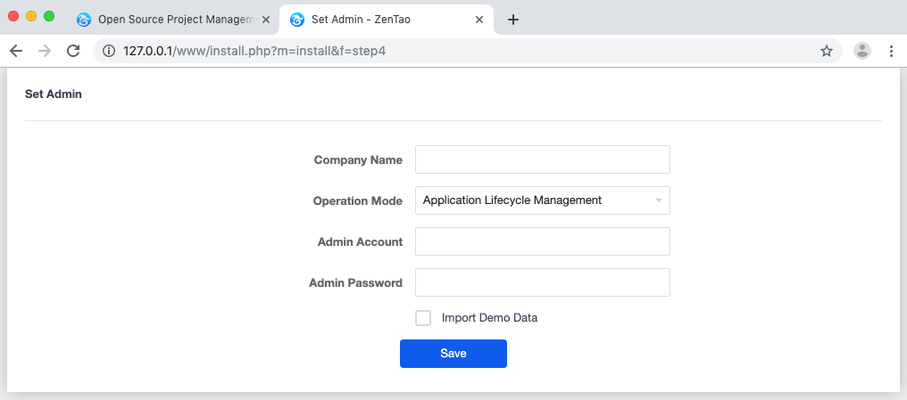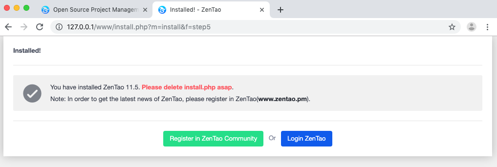 3.3 Visit ZenTao in your browser at LOCALHOST IP:PORT NUMBER/www/index.php