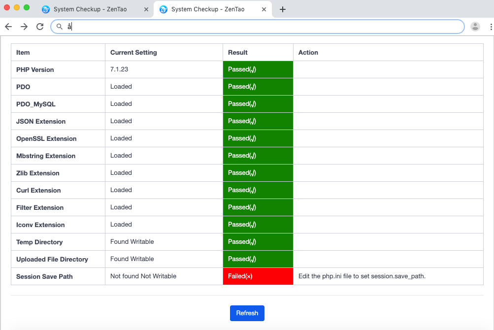 - The modules of pdo, pdo_mysql, json, filter, openssl, mbstring, zlib, curl, gd, iconv are needed for ZenTao running, please make sure they are uploaded in the PHP environment.