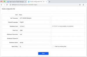 3.3 Visit ZenTao in your browser at LOCALHOST IP:PORT NUMBER/www/index.php