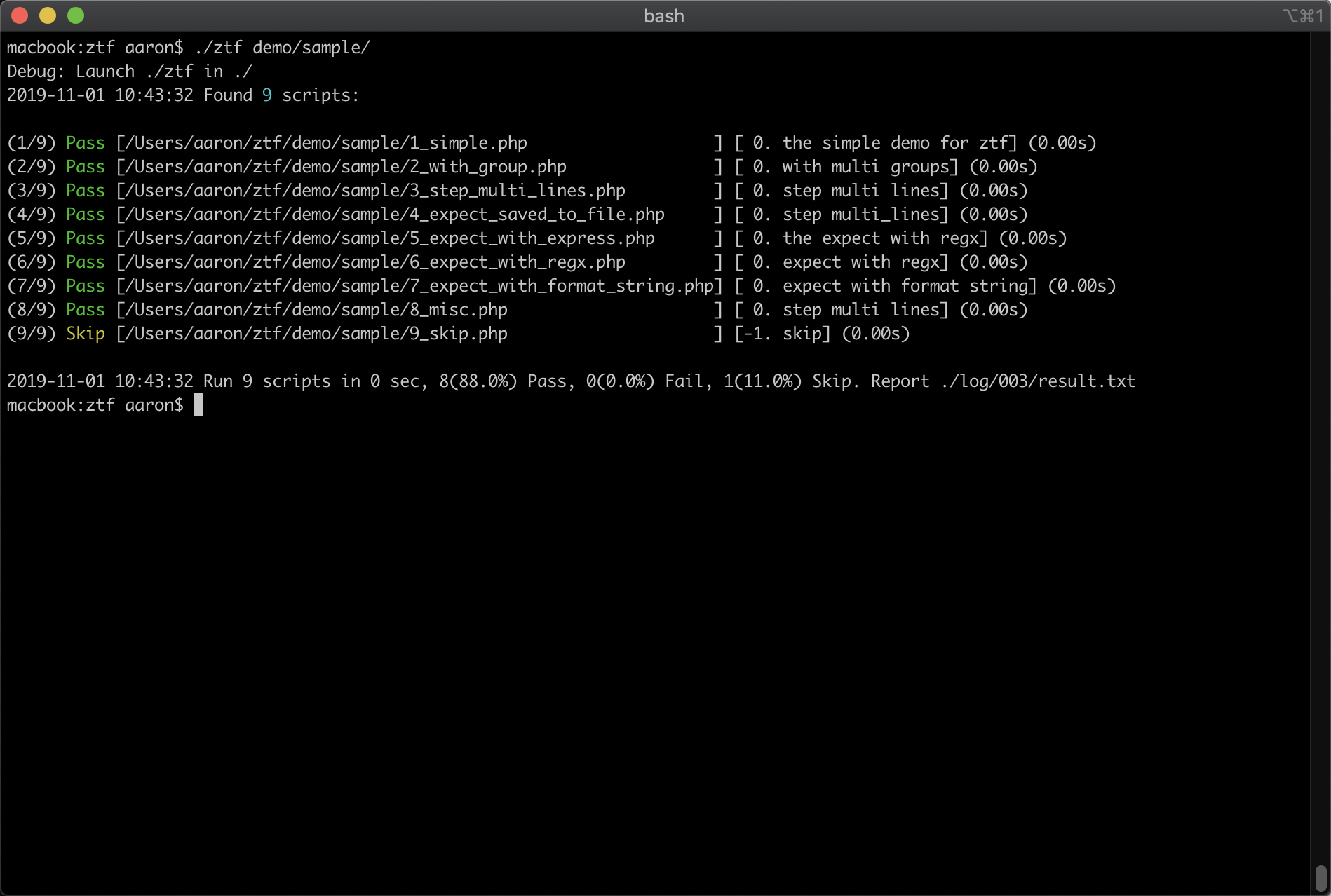 4610 Run unit tests in ZTF and get the execution results.