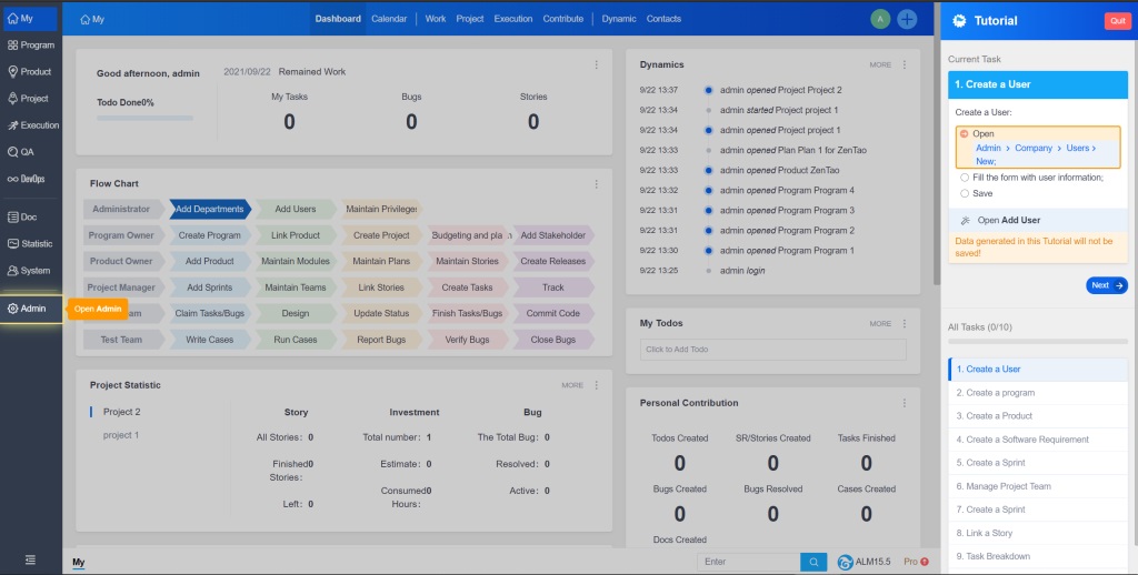 - Add a novice guidance function to help users quickly understand the ZenTao use process and new function points;