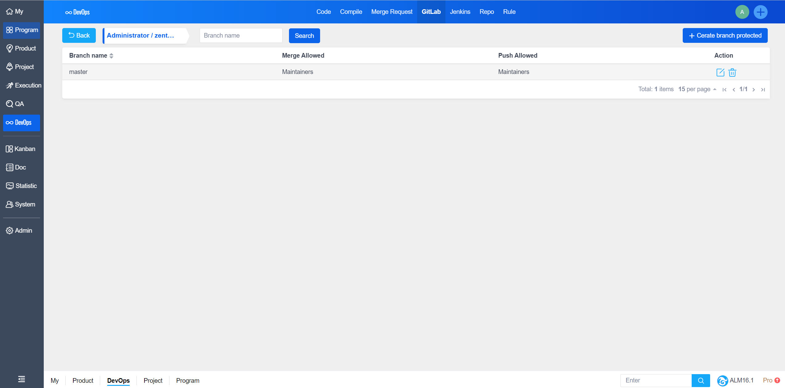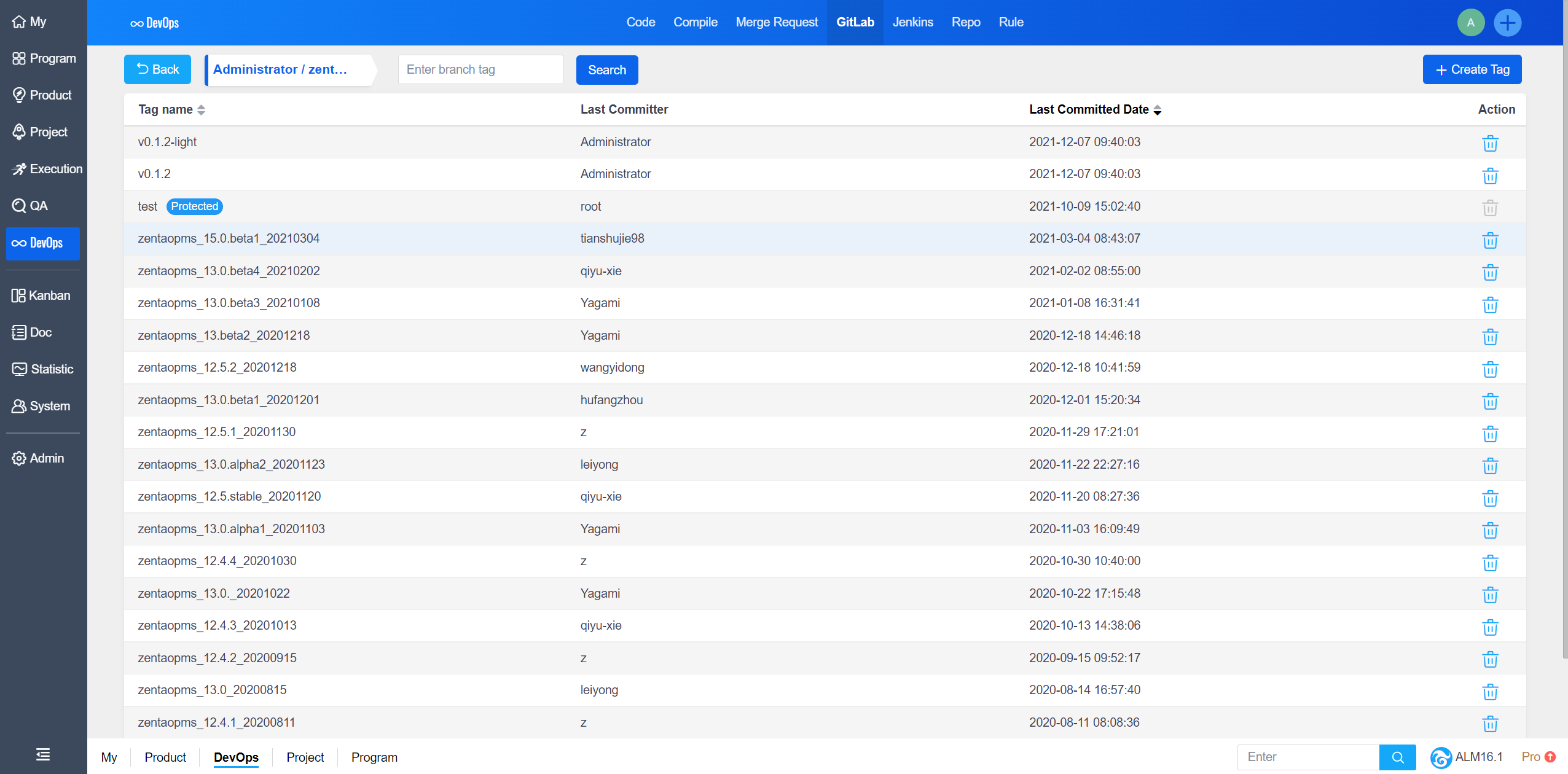 - Add a list of protected tags in GitLab-DevOps, you can handle GitLab tags in ZenTao.