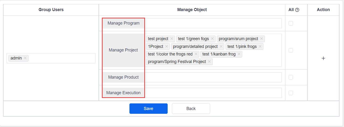 - The privilege settings of different programs, products, and executions are added to Group Project Administrator.