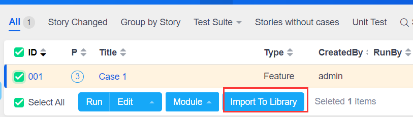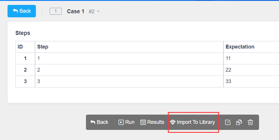 ▼Cases can be imported to Case Library. It's for the convenience of testers to build up use case resources and reuse cases.
