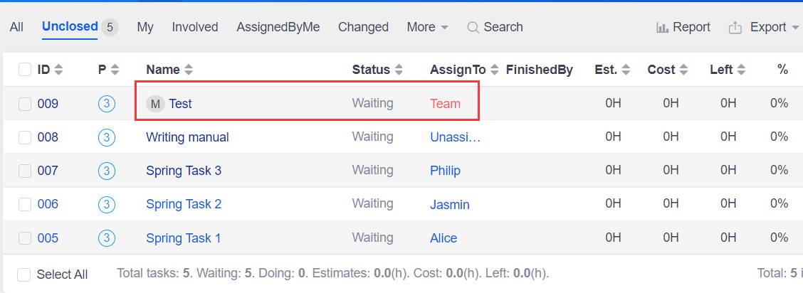 ▼A parallel task involved in multiple users could be assigned to a team, with a "Team" mark on the list, and you can click the mark to view the progress of each team member.