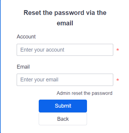 ▼Once the function of resetting passwords via emails is enabled in Admin, users can help themselves to set passwords instead of asking for help from the administrator, which improves the work efficiency.
