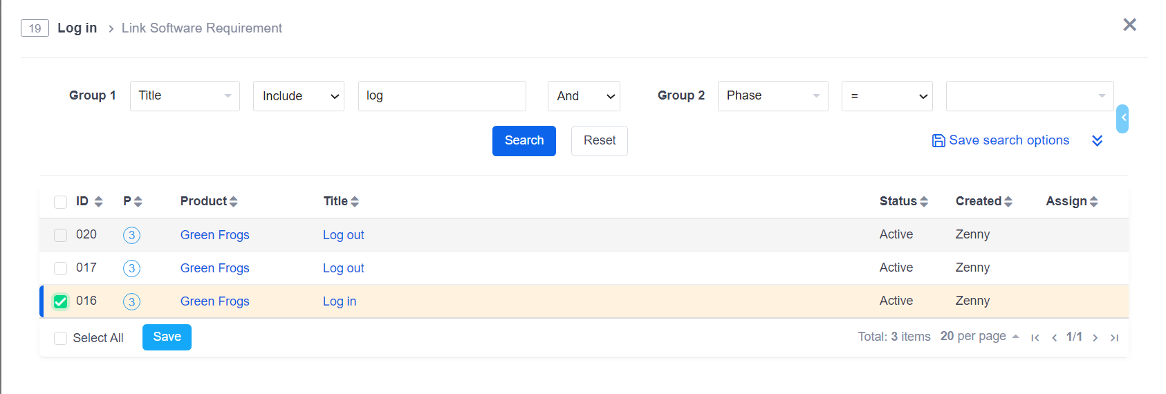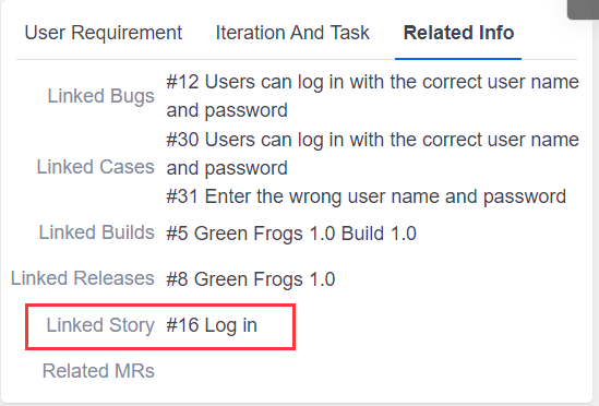 - It's supported to build relationships between user requirements and user requirements, software requirements and software requirements.
