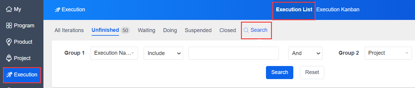 - The search function is added to the execution list (the project list is added synchronously in the classic mode).