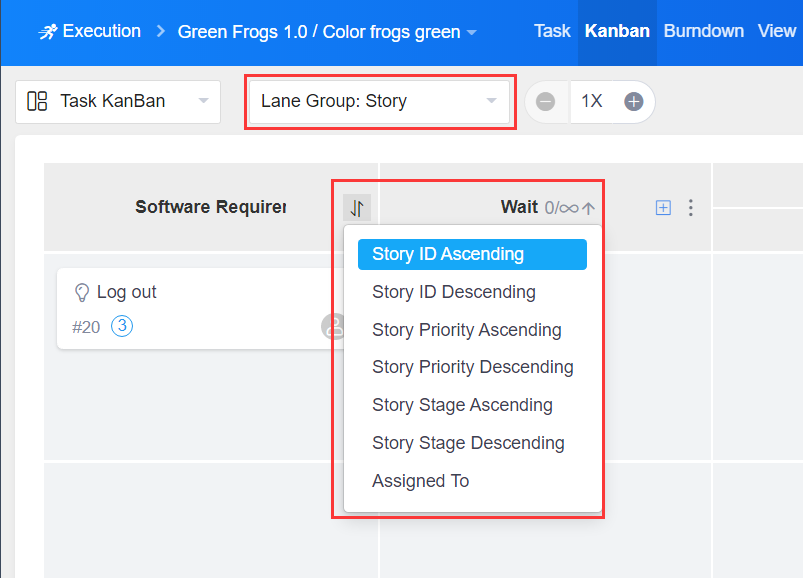 - When task boards in Scrum Kanban are grouped by stories, the software requirement column supports sorting by different conditions.