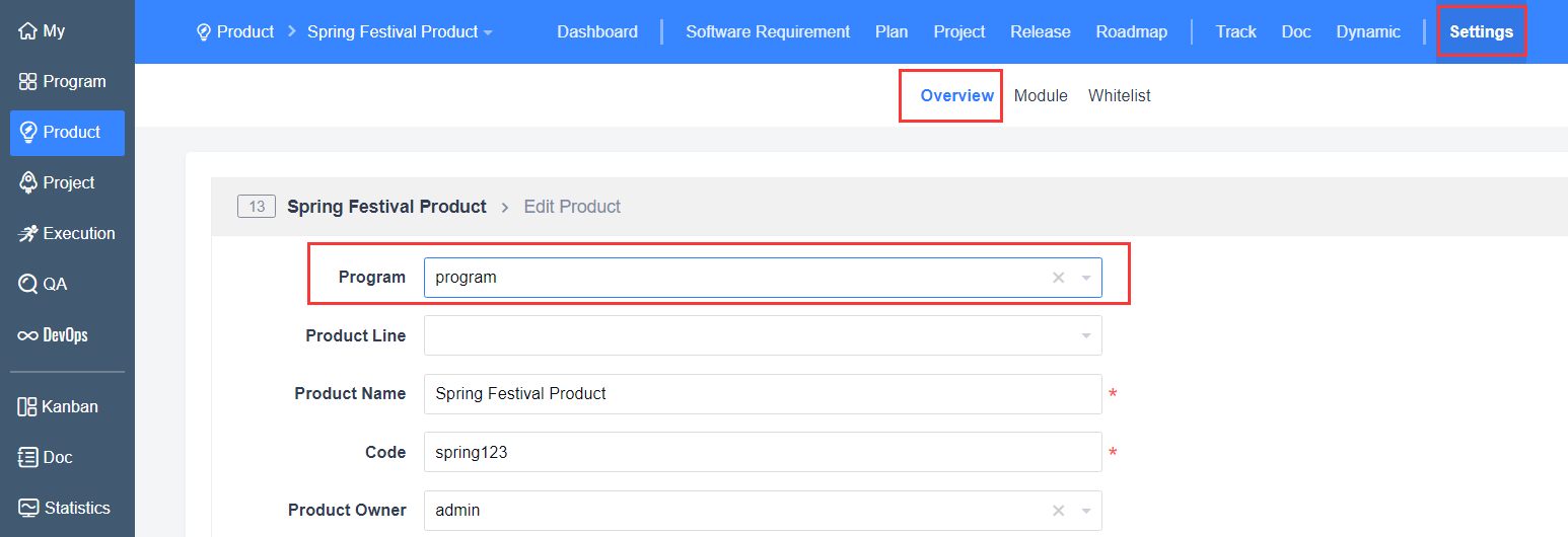 ▼ Decoupling of Program, Product, and Project: projects are allowed to link products beyond their programs; the parent programs can be changed even with the products and projects linked with.