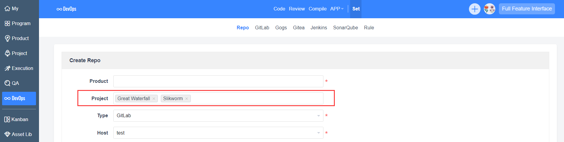 ▼ In order to meet user's needs on managing code on the project level, we have added the item of selecting the related projects while creating or editing code repository.