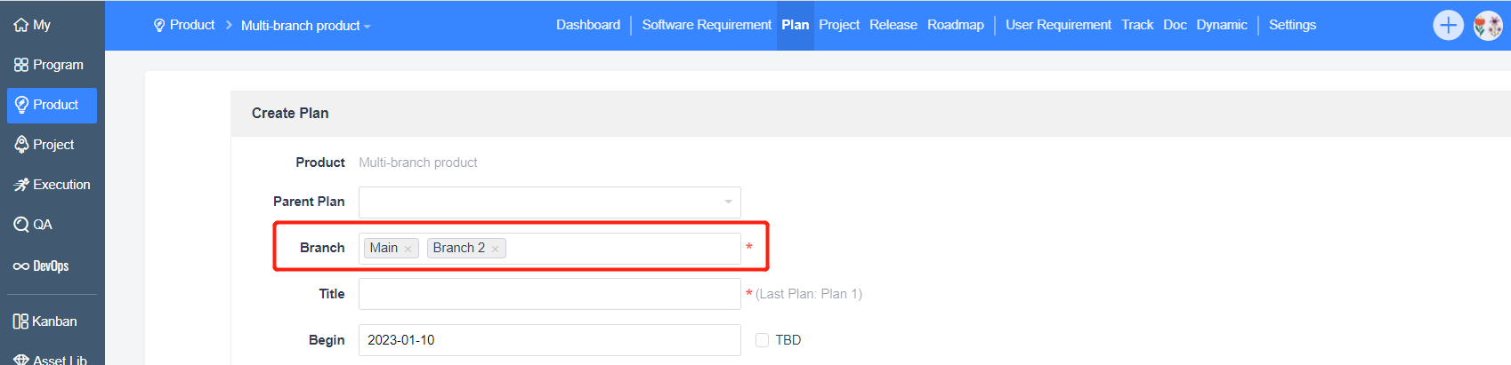 ▼ It's supported to link stories and bugs cross branch/platform when creating plan, build, and release.