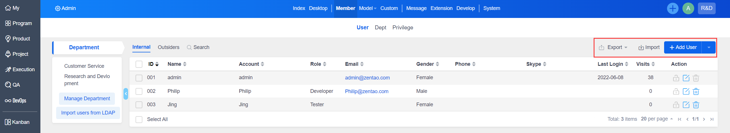 - Users can be imported and exported, which makes it convenient to create users in batches.