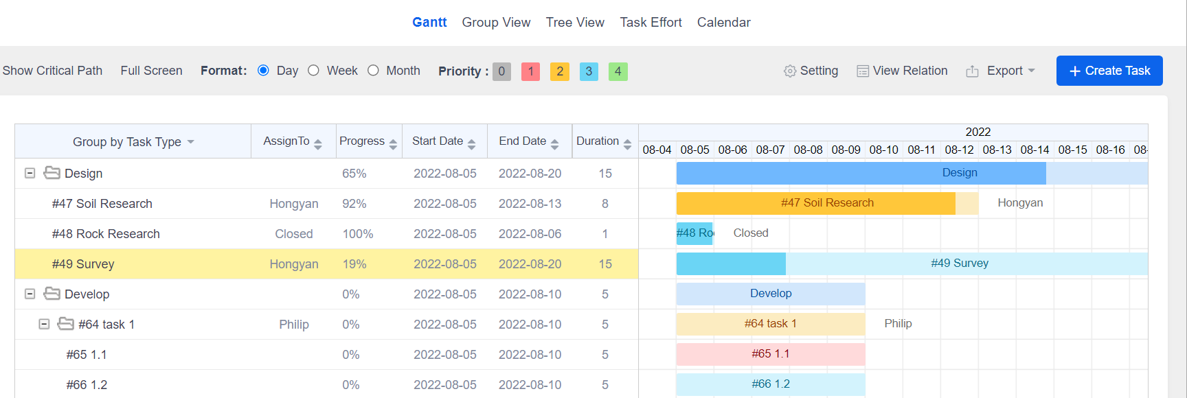 - The color of Gantt chart is optimized.