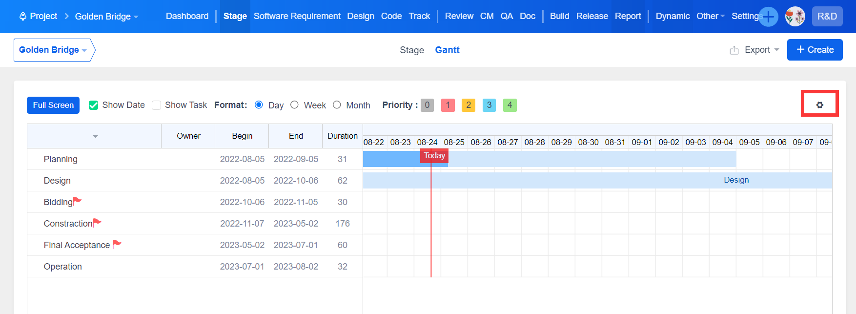 ▼Once the privilege of editing Gantt chart has been enabled in the backend, you can drag and move the tasks/stages to set their scheduled time and adjust tasks sequence.