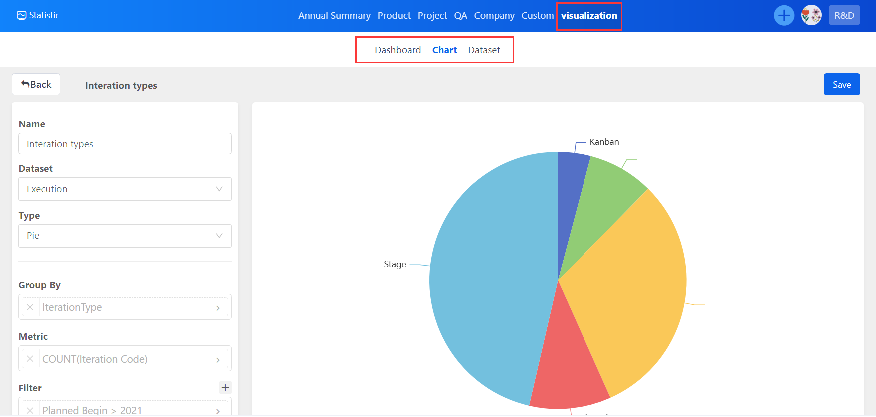 - Dataset: built-in ZenTao data source and support to add customized data.