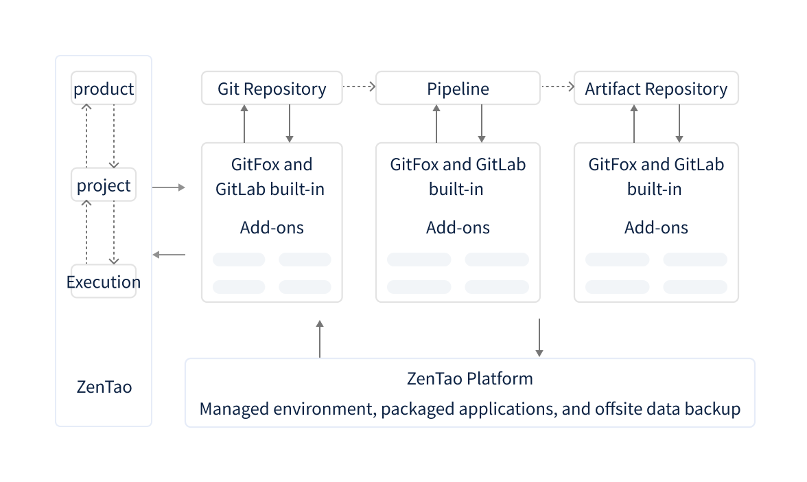 The platform includes commonly used DevOps applications, facilitating seamless data interaction with ZenTao.