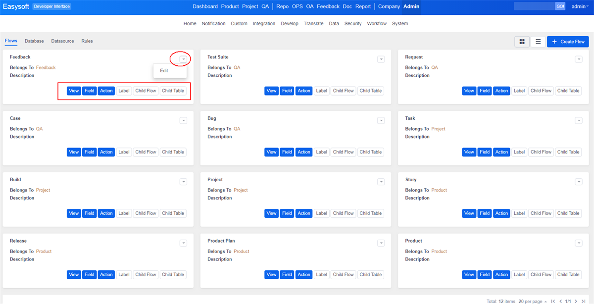 ZenTao Biz has added the Flow feature. You can customize it so to make ZenTao fit your workflow.Fields, actions, layout and data as built in ZenTao can be customized and used to extend rewrite ZenTao built-in workflows.