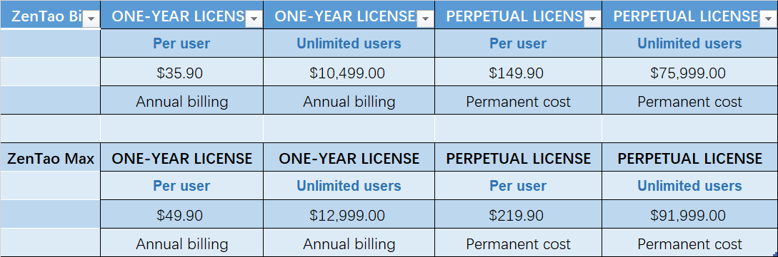 3. How are all versions of the ZenTao priced?