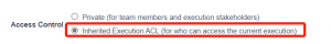 The access control of the execution includes Private, Inherited Execution ACL, and Whitelist.